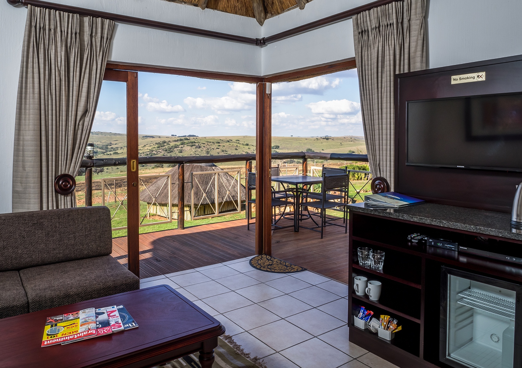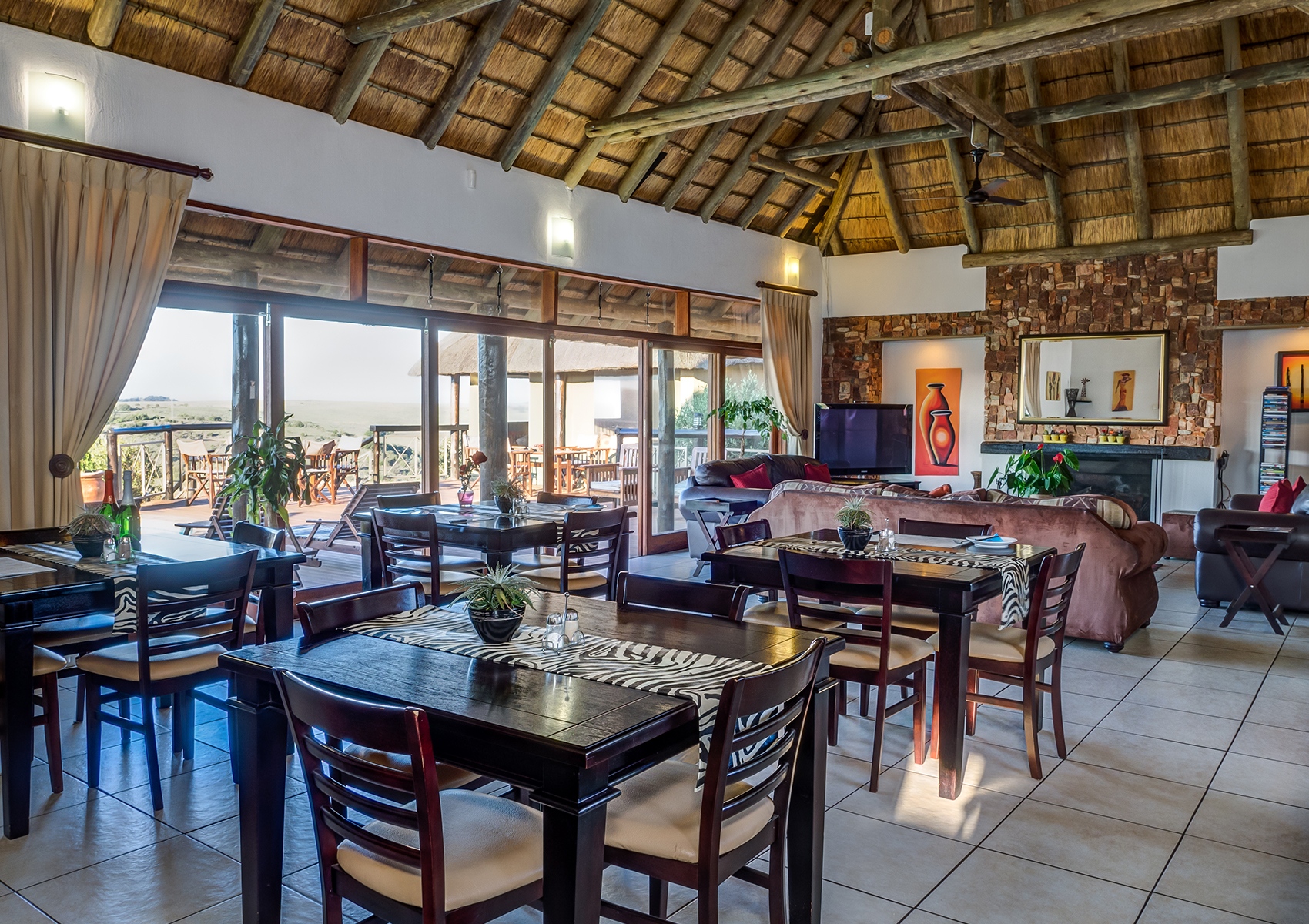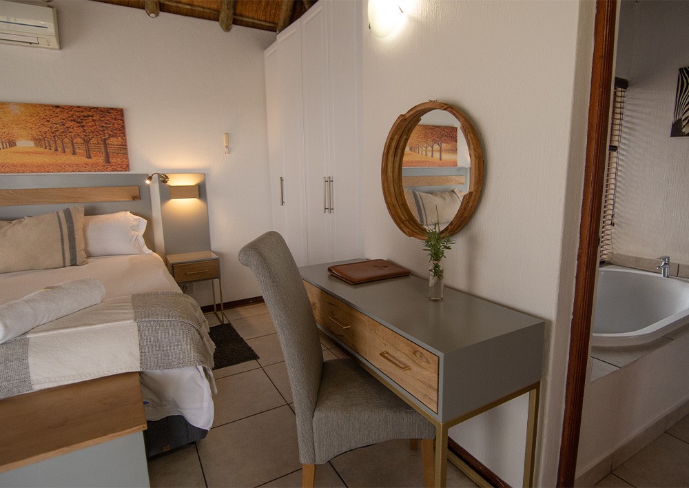 Aside from the comfort guests will enjoy in one of our exclusive deluxe suites, one of the main draws of this homely 2000 ha reserve near Krugersdorp is that it’s unfenced. Relaxing around the central campfire area, while watching (and listening!) for the wildlife is one of the best ways to spend an afternoon or evening. Finding sanctuary amidst the Highveld landscapes are buffalo, giraffe, kudu, red hartebeest, impala, zebra and gemsbok, as well as a variety of birdlife, often seen milling around the lodge. Guided game drives are available for those looking to get a better feel for what lies beyond.